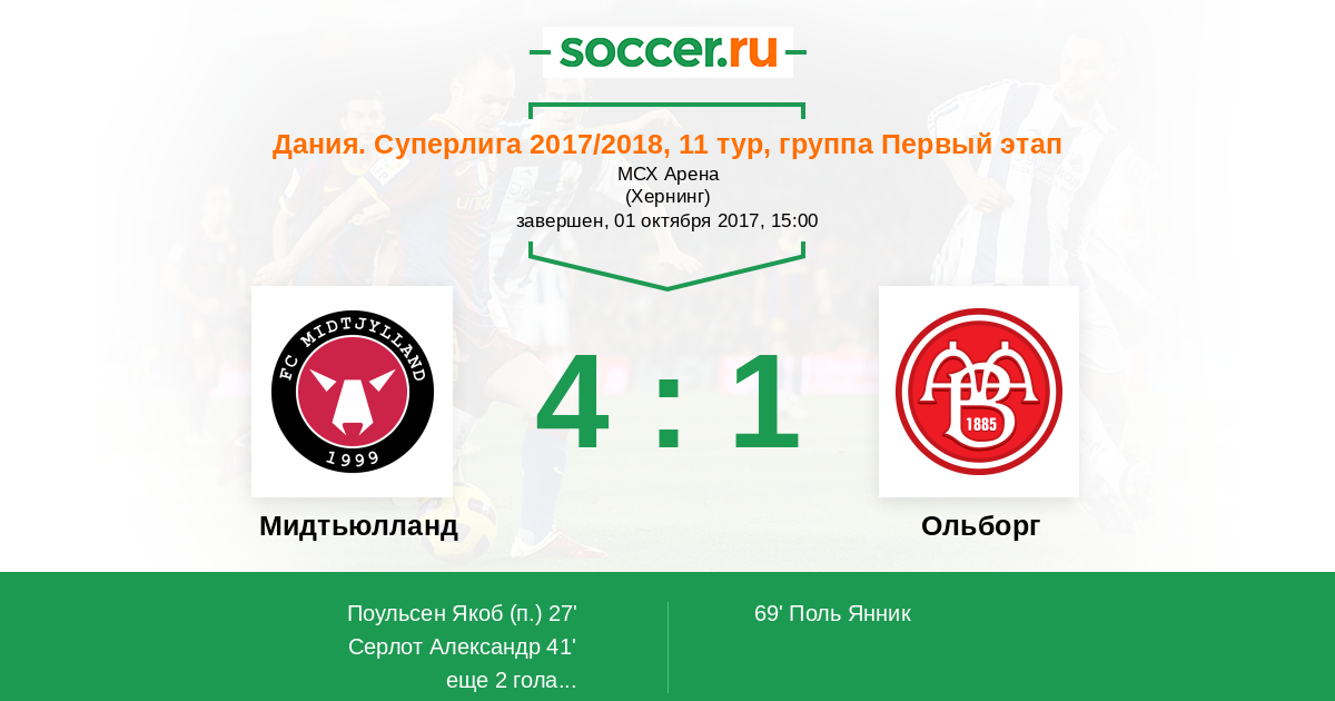 27' (1:0) Поульсен Якоб (7)