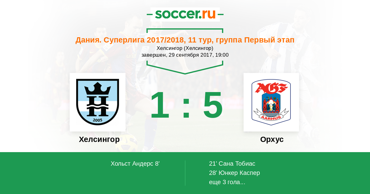 Протокол матча Хелсингор против Орхус