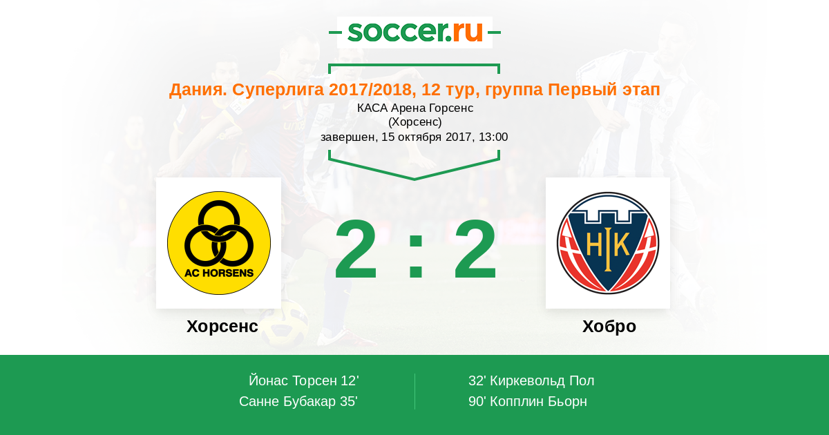 Протокол матча Хорсенс против Хобро