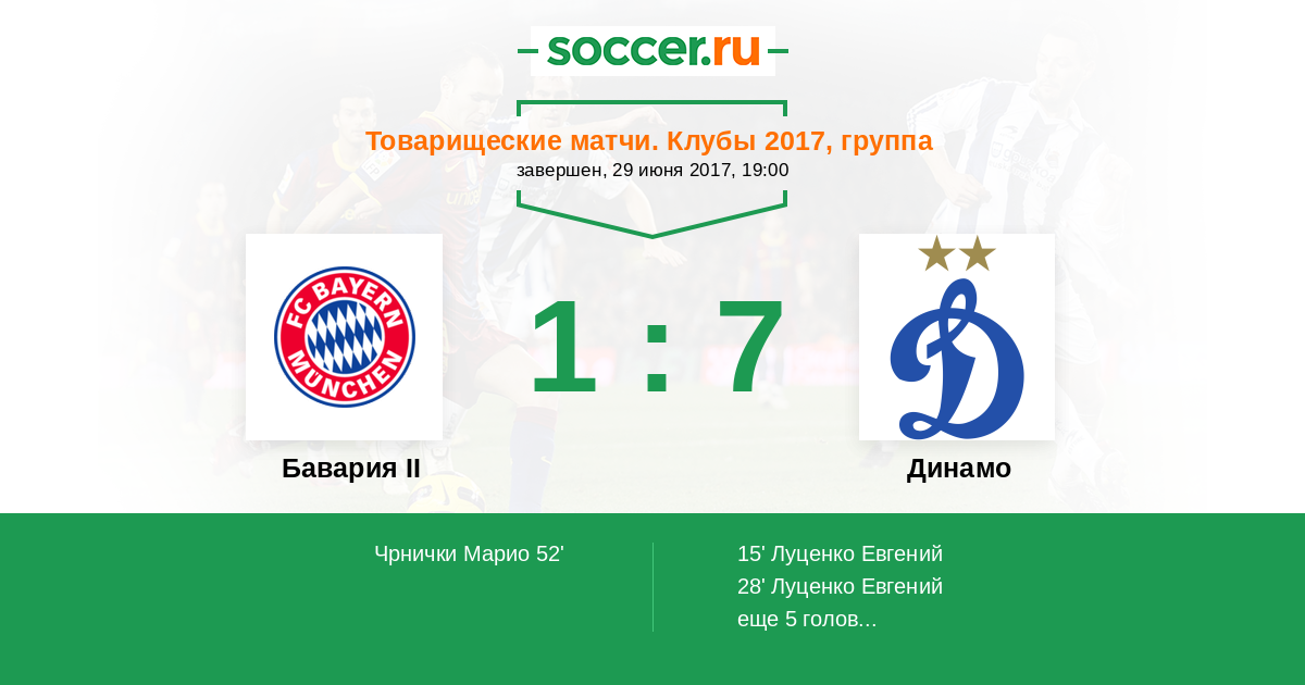 Протокол матча Бавария II против Динамо