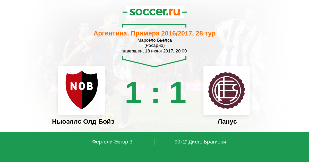 Протокол матча Ньюэллс Олд Бойз против Ланус