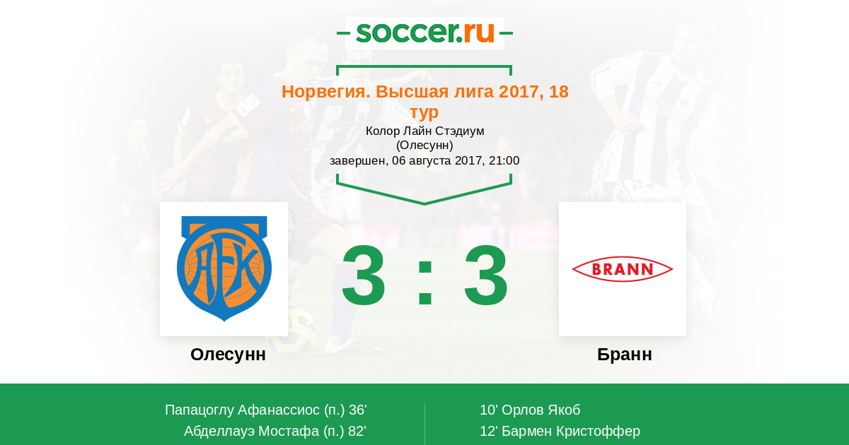 Протокол матча Олесунн против Бранн