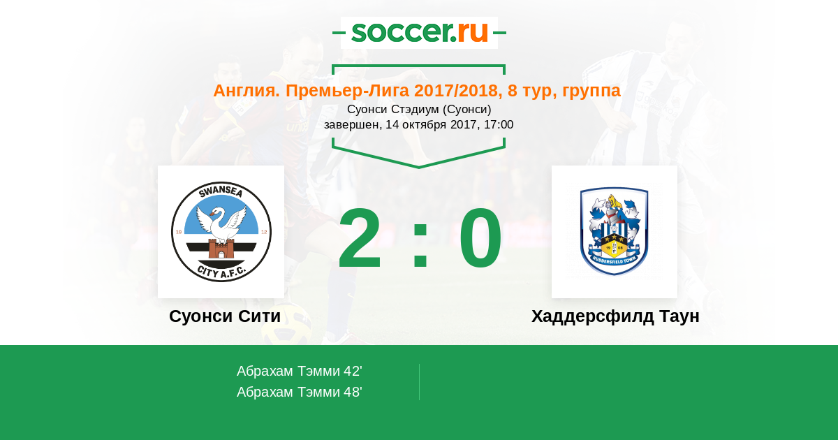 Протокол матча Суонси Сити против Хаддерсфилд Таун