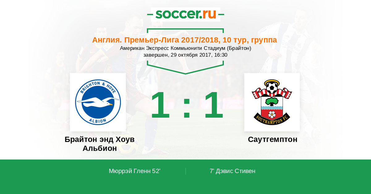 Протокол матча Брайтон энд Хоув Альбион против Саутгемптон