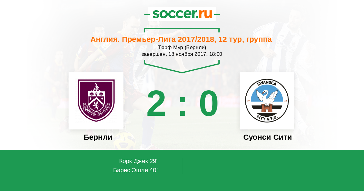Протокол матча Бернли против Суонси Сити