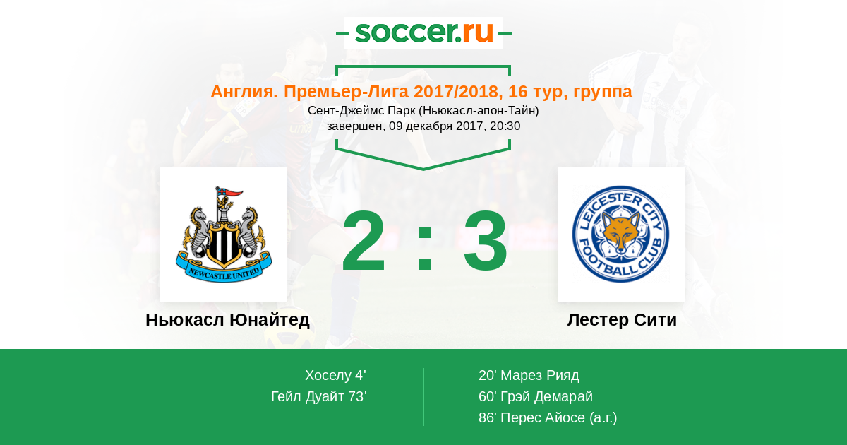 Протокол матча Ньюкасл Юнайтед против Лестер Сити