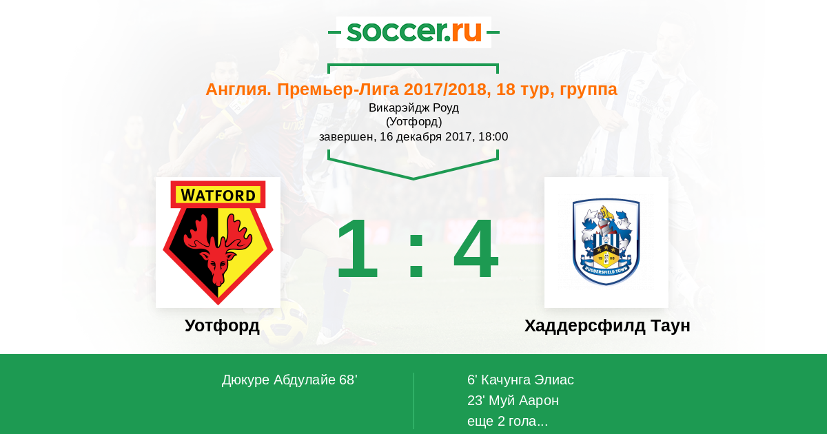 Протокол матча Уотфорд против Хаддерсфилд Таун