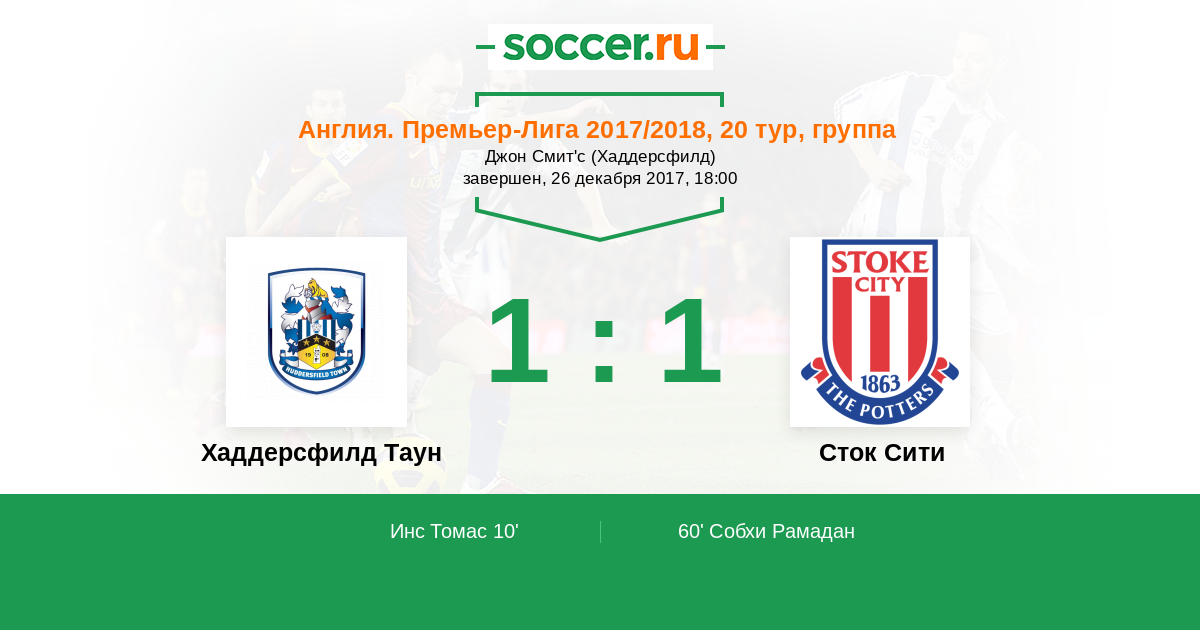 Протокол матча Хаддерсфилд Таун против Сток Сити