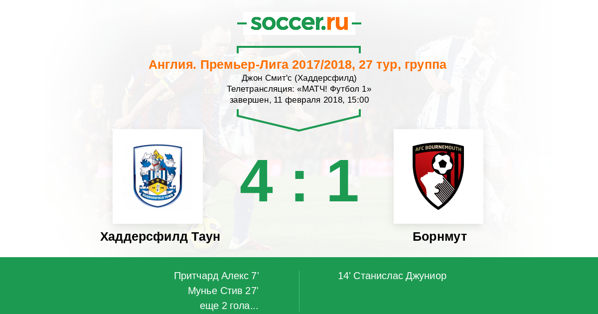 Протокол матча Хаддерсфилд Таун против Борнмут