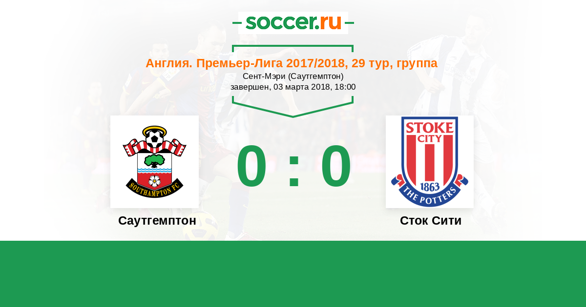 Протокол матча Саутгемптон против Сток Сити