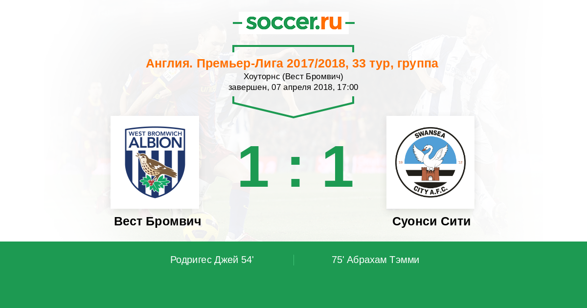 Протокол матча Вест Бромвич против Суонси Сити