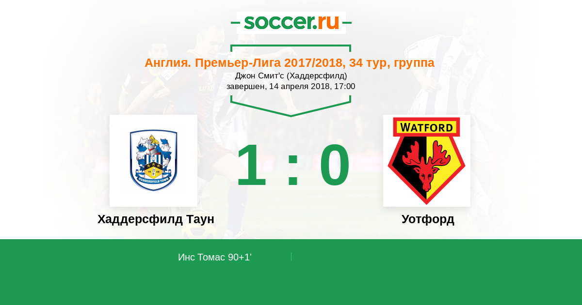 Протокол матча Хаддерсфилд Таун против Уотфорд