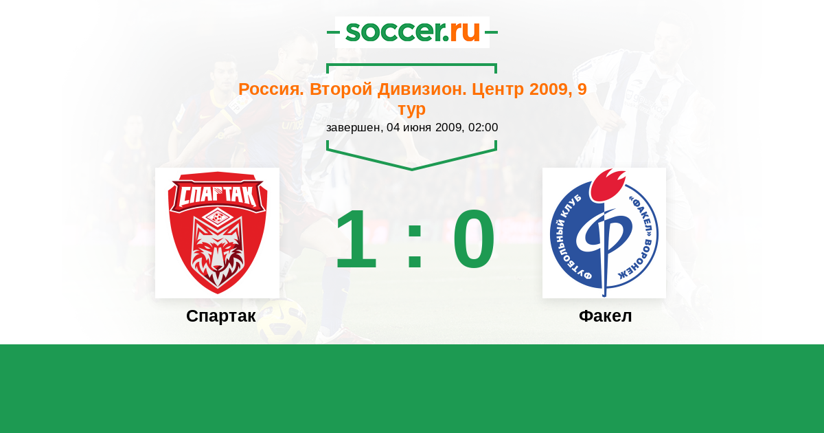 Россия. Вторая лига. Группа 3 04.09.2009 Факел Логотип футбольный клуб Факел (Воронеж) 0:3 Логотип футбольный клуб Спартак (Тамбов) Спартак