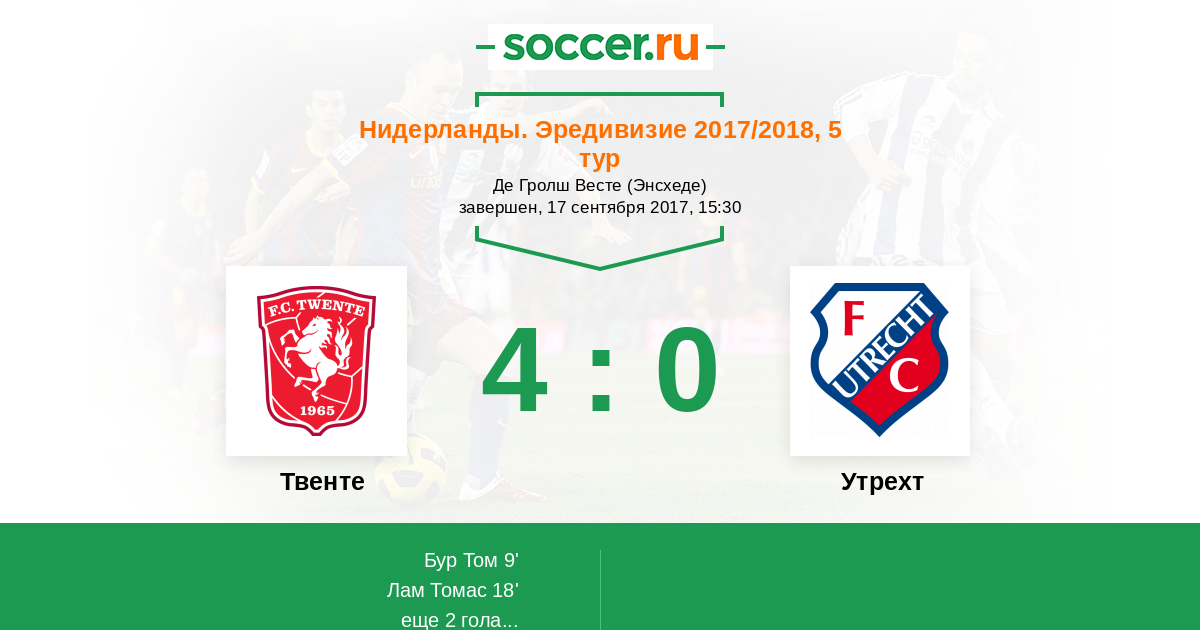 Протокол матча Твенте против Утрехт
