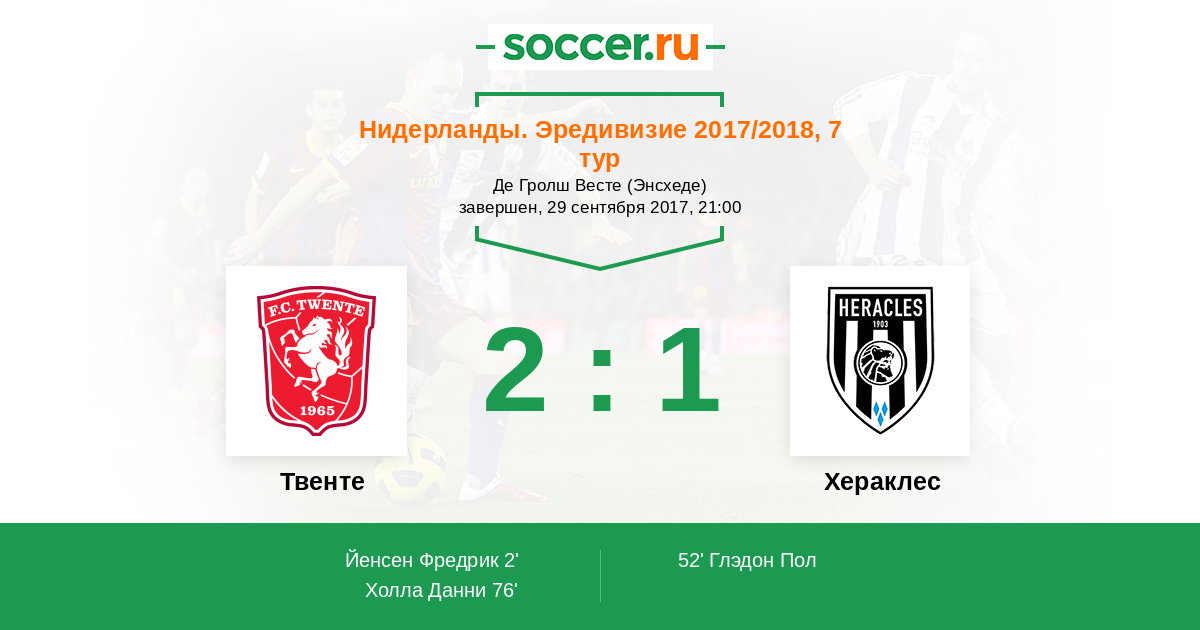 Протокол матча Твенте против Хераклес