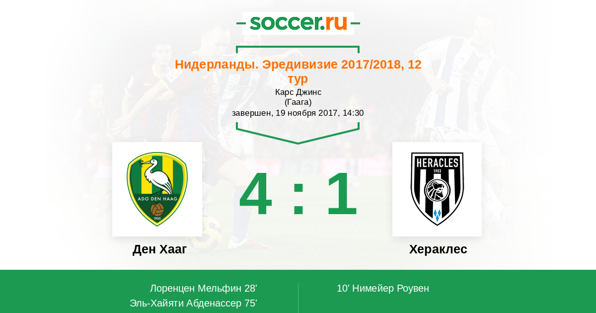 Протокол матча Ден Хааг против Хераклес