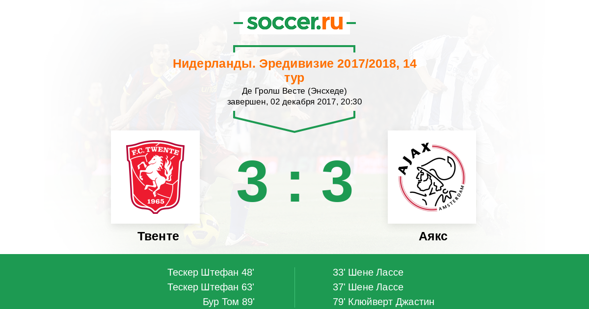 Протокол матча Твенте против Аякс