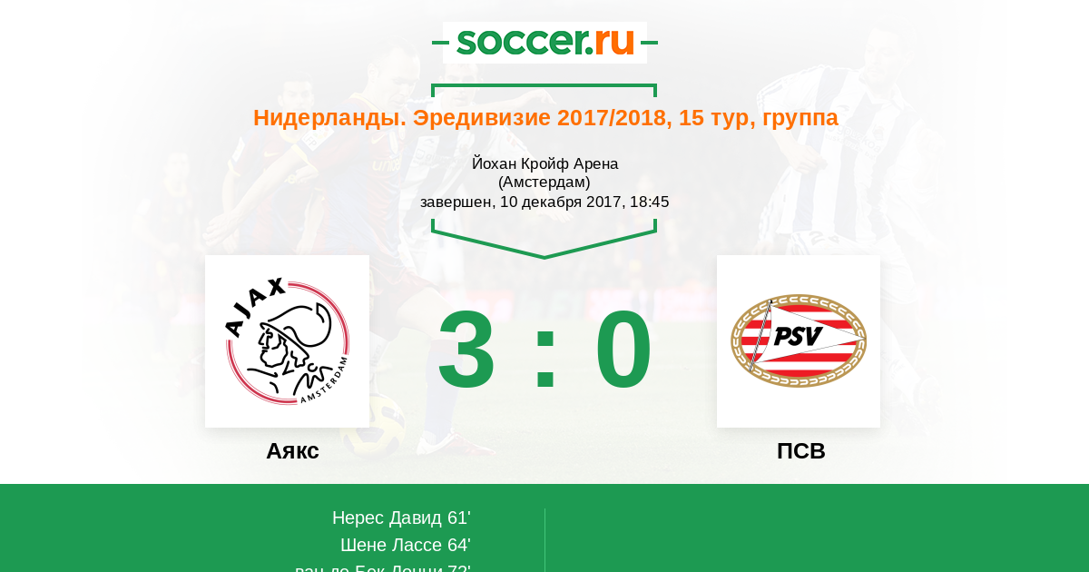 Протокол матча Аякс против ПСВ