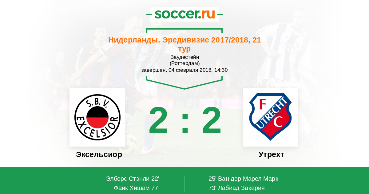 Протокол матча Эксельсиор против Утрехт