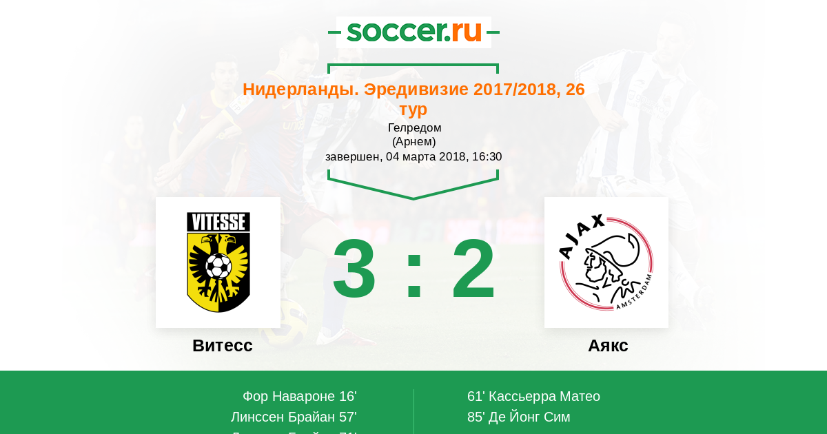 Протокол матча Витесс против Аякс
