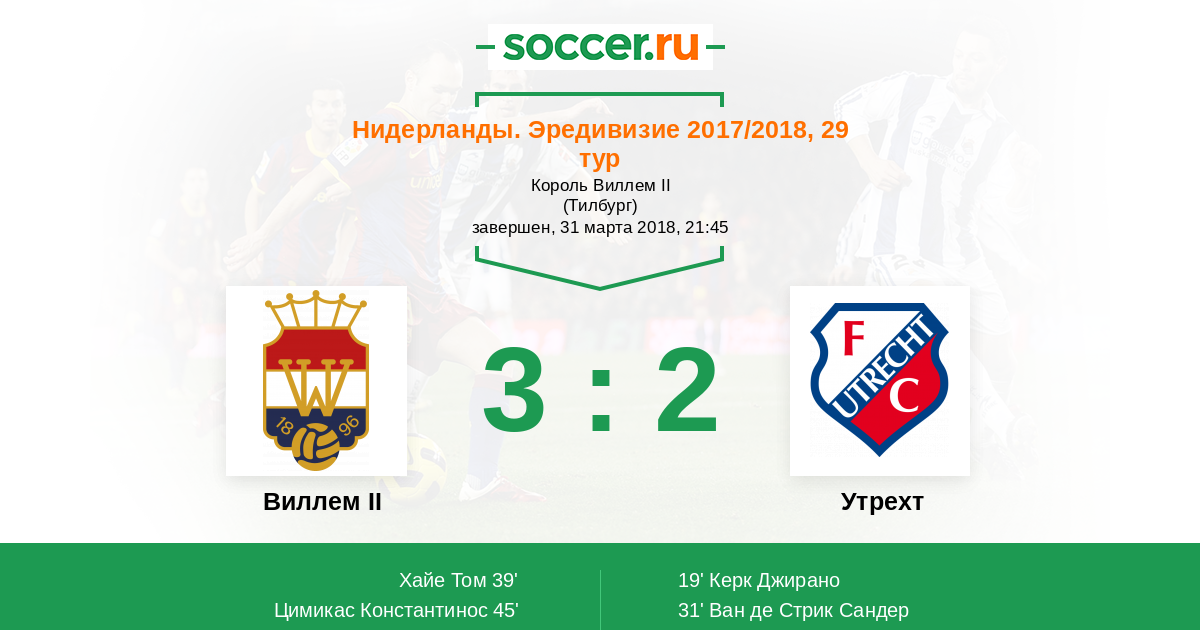 Протокол матча Виллем II против Утрехт