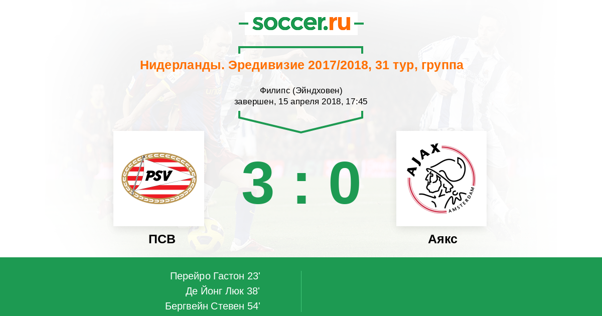 Протокол матча ПСВ против Аякс
