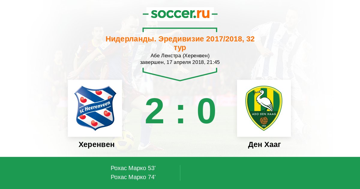 Протокол матча Херенвен против Ден Хааг