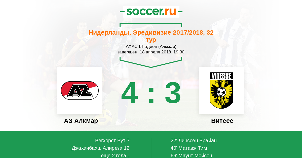Протокол матча АЗ Алкмар против Витесс
