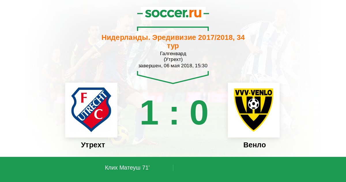 Протокол матча Утрехт против Венло