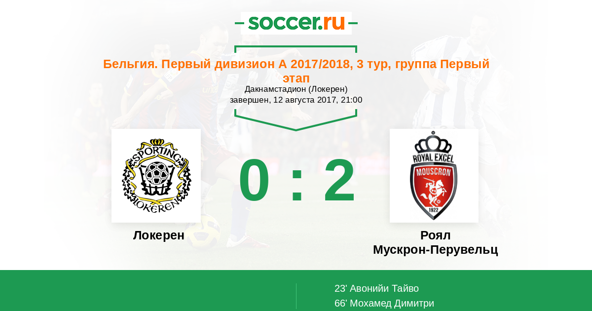 Протокол матча Локерен против Роял Мускрон-Перувельц
