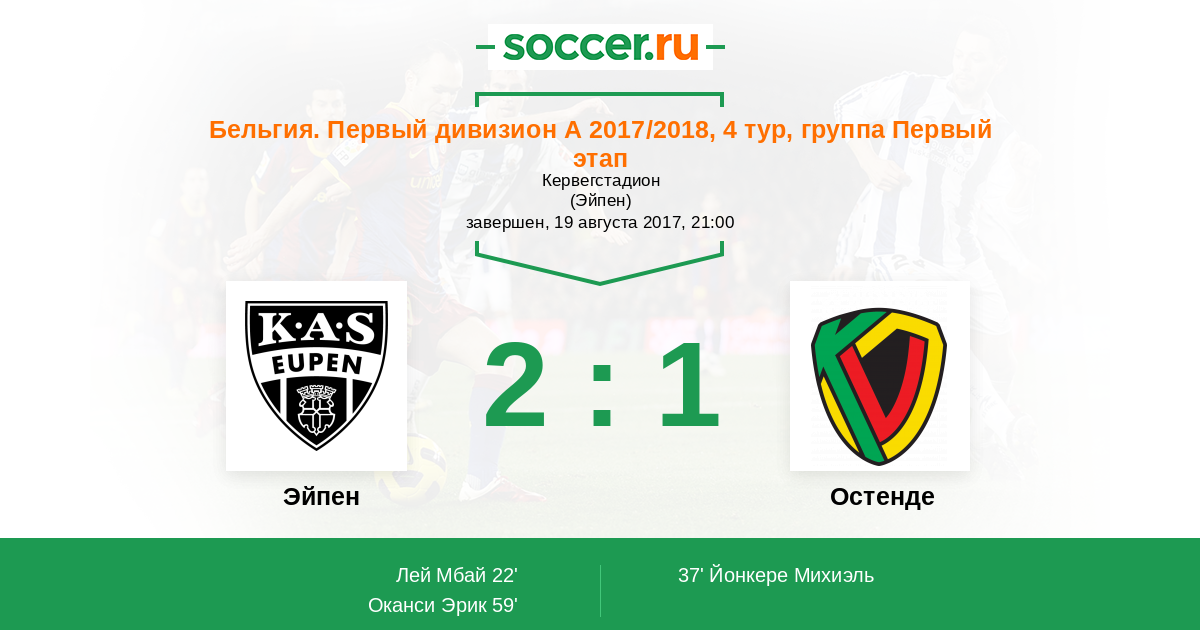 22' (1:0) Лей Мбай (9) (Луис Гарсия (10))
