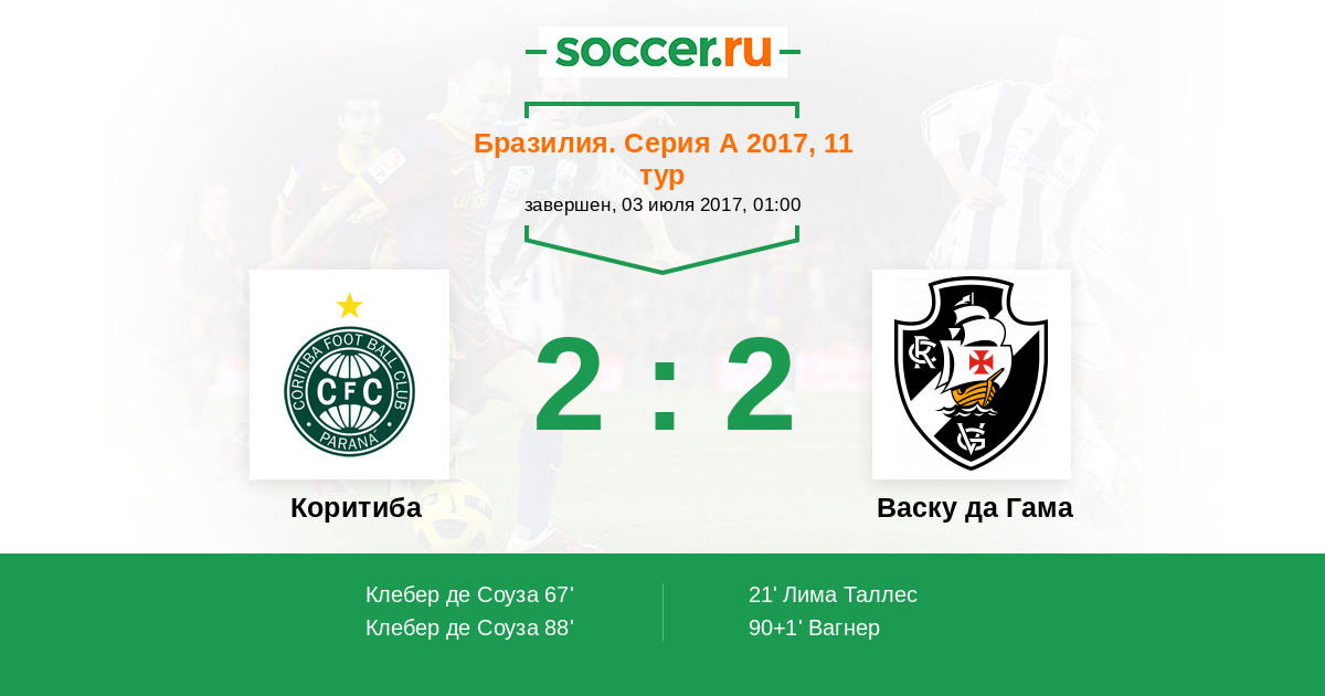 Протокол матча Коритиба против Васку да Гама