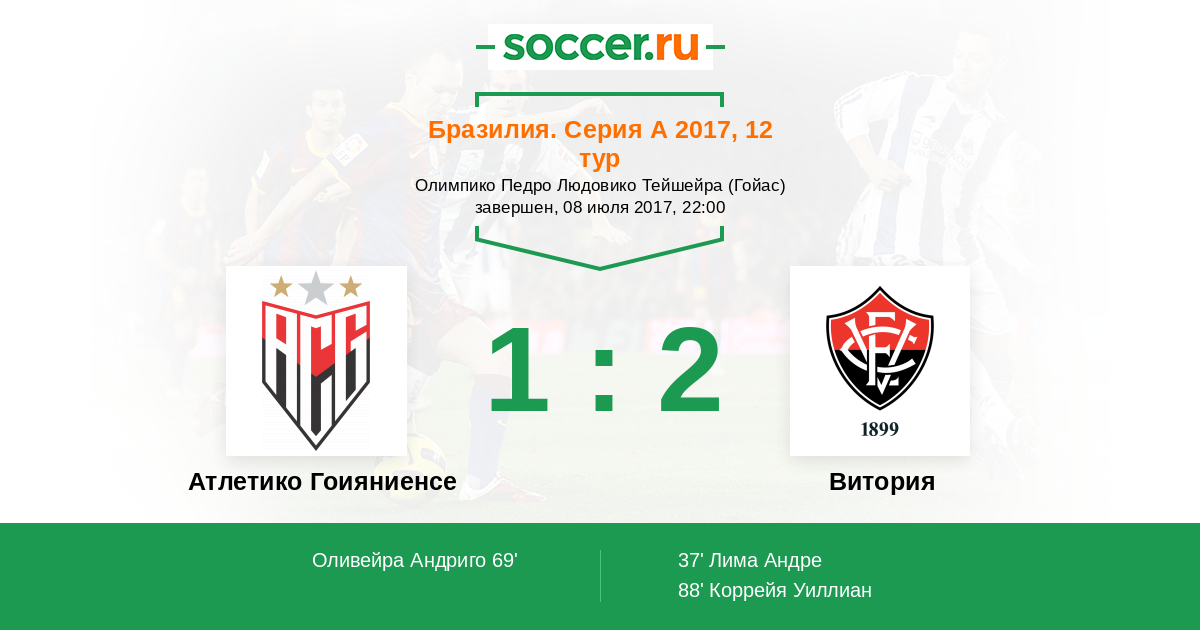 Протокол матча Атлетико Гоияниенсе против Витория