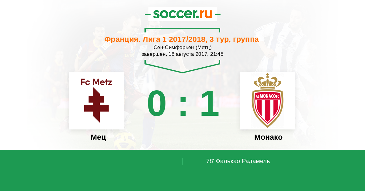 Протокол матча Мец против Монако