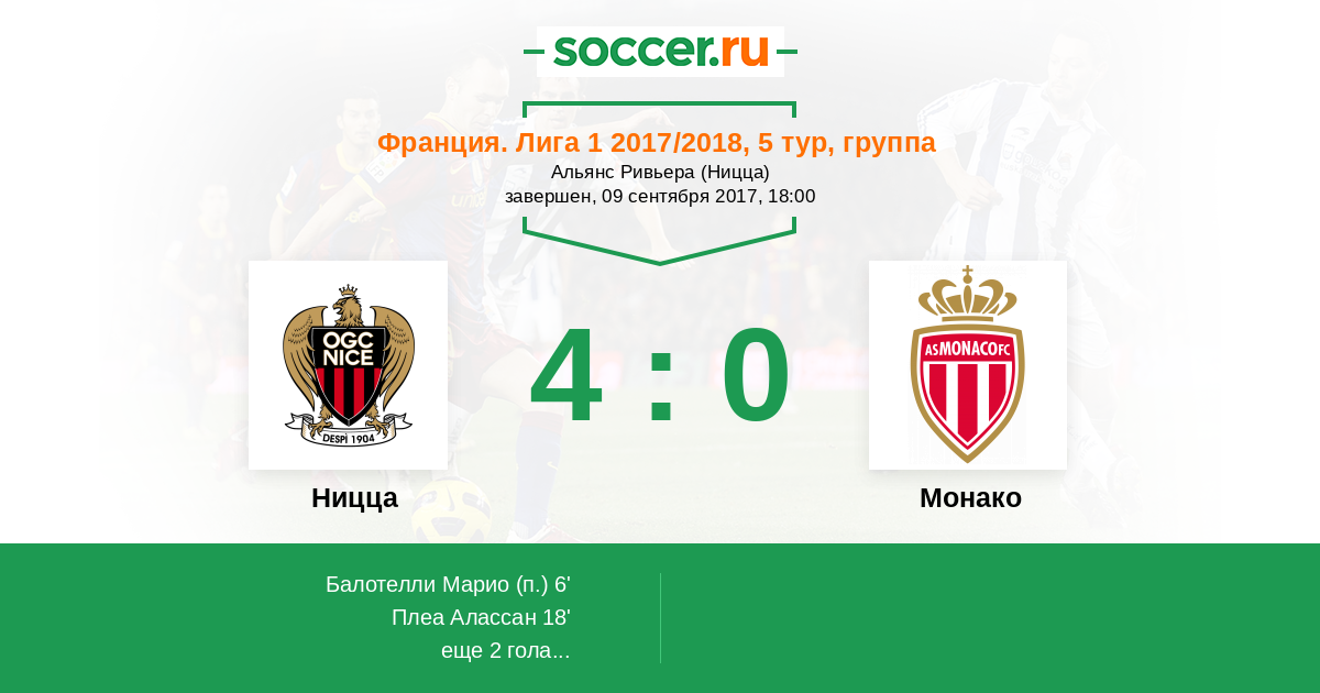 Протокол матча Ницца против Монако