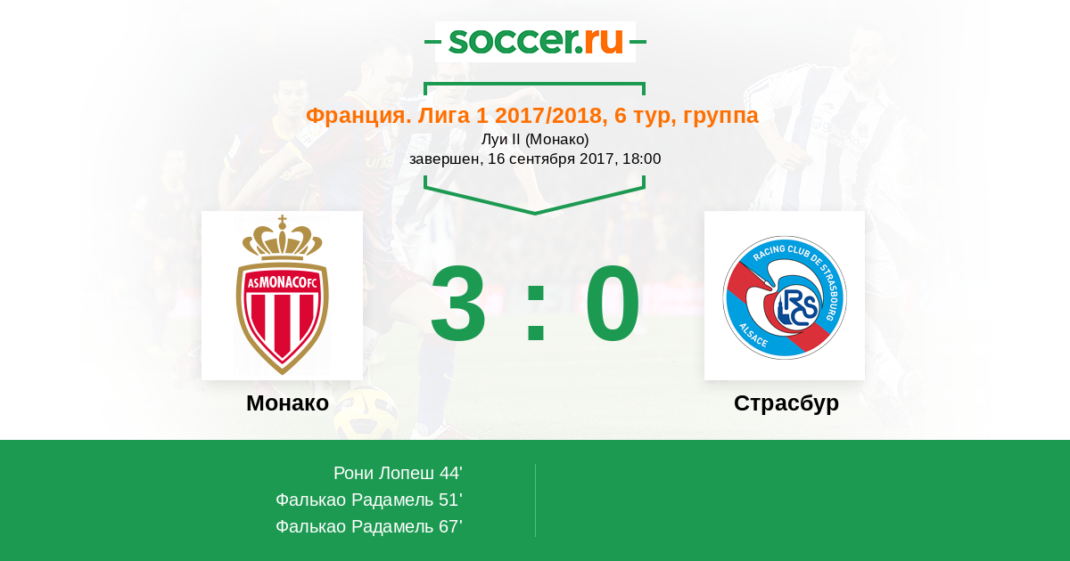 44' (1:0) Рони Лопеш (20) (Фалькао Радамель (9))