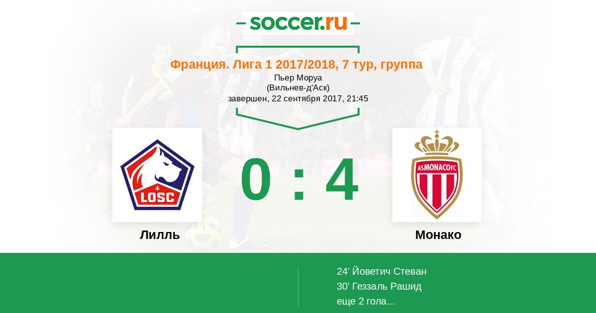 Протокол матча Лилль против Монако