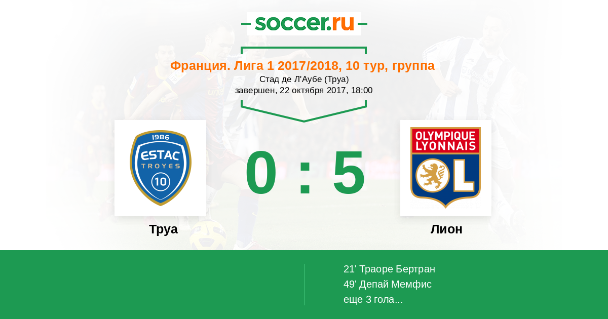 49' (0:2) Депай Мемфис (11) (Ндомбеле Танги (28))