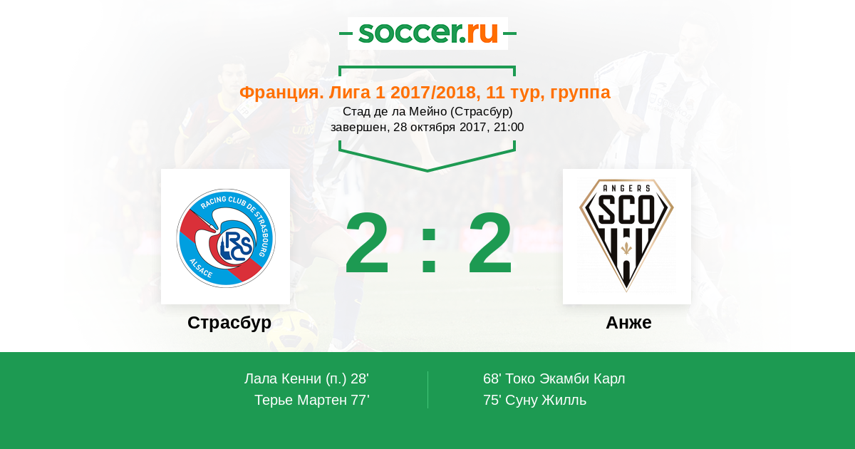 Протокол матча Страсбур против Анже
