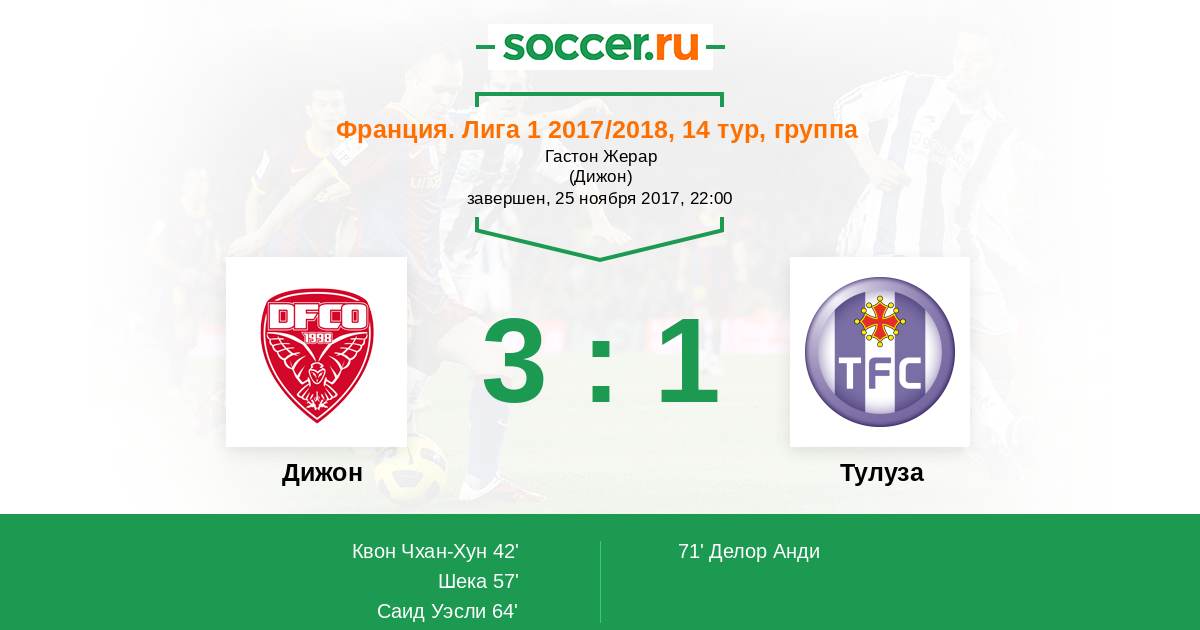 Протокол матча Дижон против Тулуза