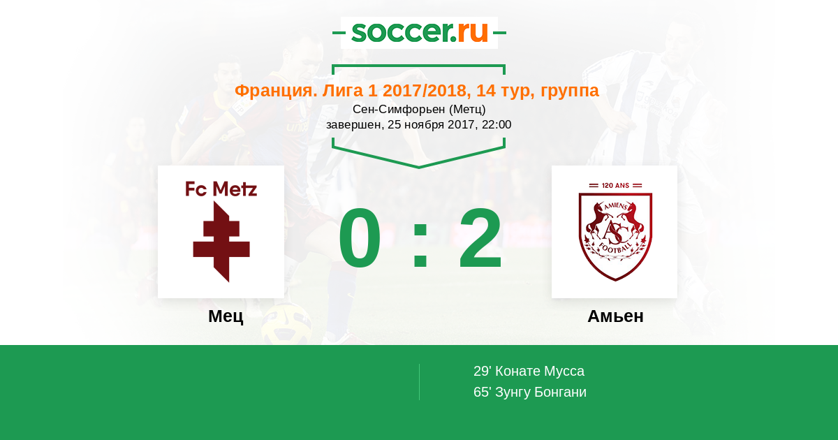Протокол матча Мец против Амьен