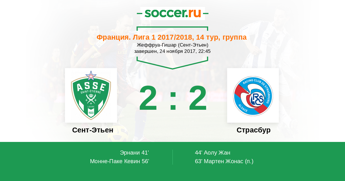 Протокол матча Сент-Этьен против Страсбур