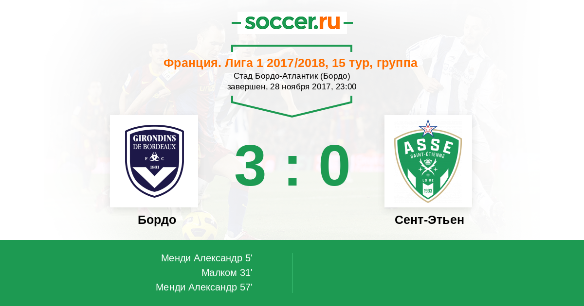 Протокол матча Бордо против Сент-Этьен