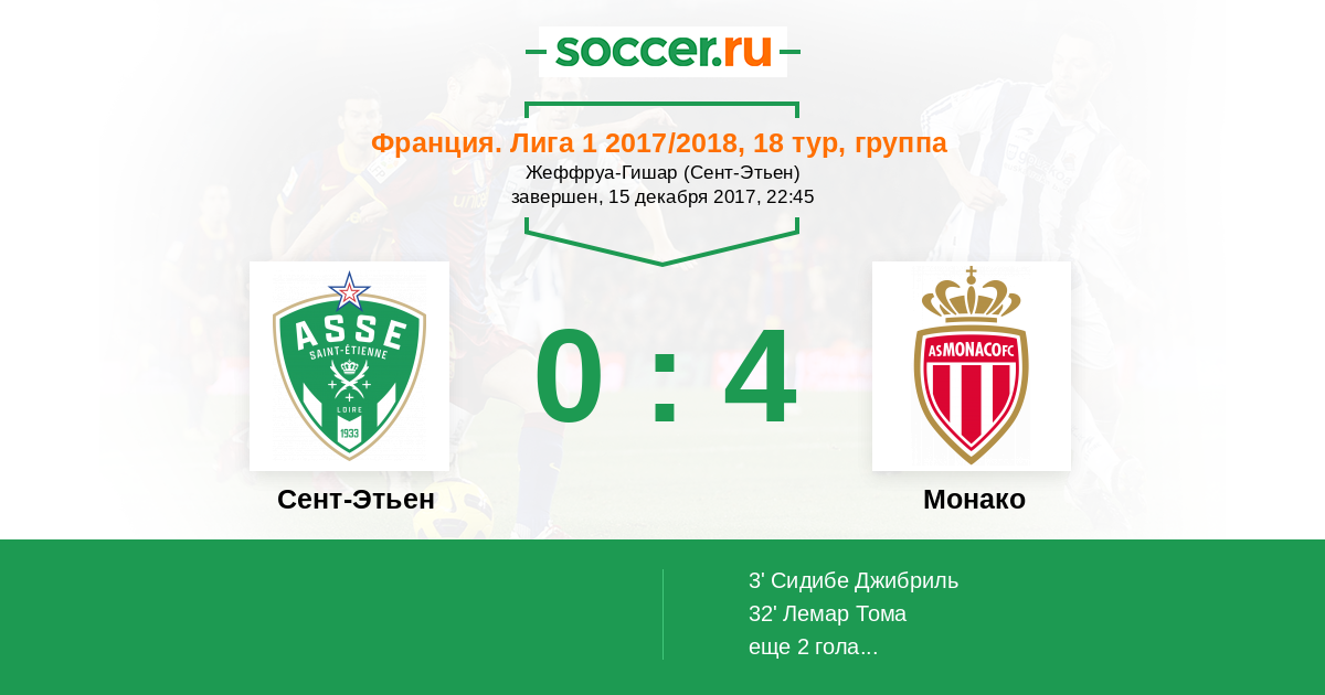 Протокол матча Сент-Этьен против Монако