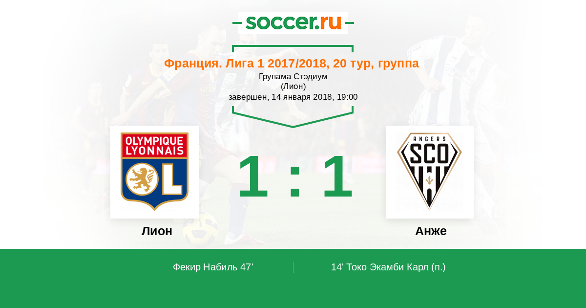 Протокол матча Лион против Анже