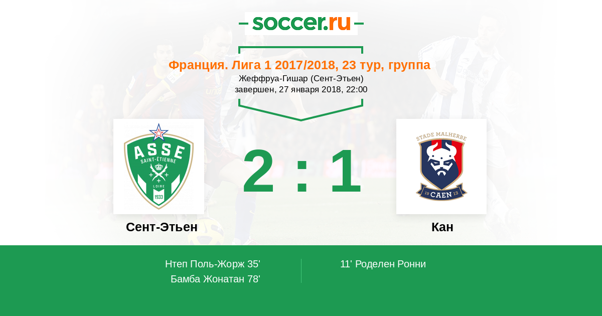 Протокол матча Сент-Этьен против Кан