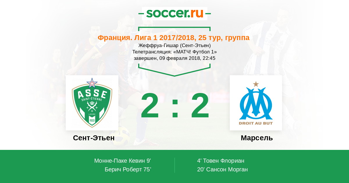 Протокол матча Сент-Этьен против Марсель