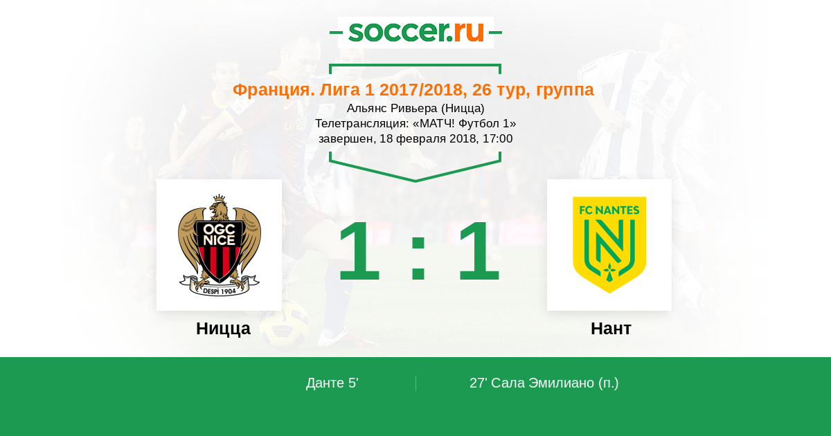 Протокол матча Ницца против Нант