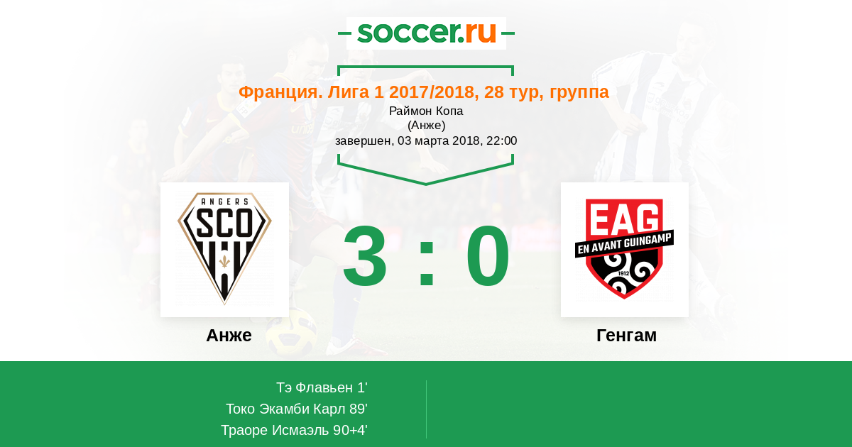 Протокол матча Анже против Генгам