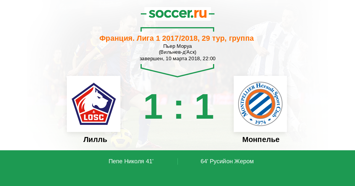 Протокол матча Лилль против Монпелье